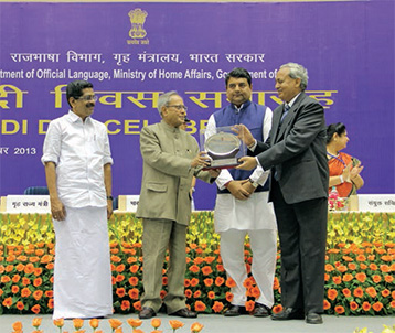PRAYAS was awarded as the best in – house magazine in 'B' region. Seen in the picture is Hon. President of India, Shri Pranab Mukherjee handing over the award to Mr. B. V. Chaubal, then DMD & CDO.