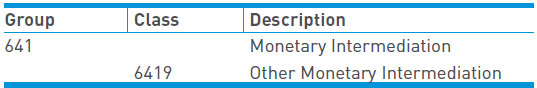The Bank's activities are covered under "Group K: Financial and Insurance Activities of National Industrial Classification (All Economic Activities) - 2008" published by Ministry of Statistics and Programme Implementation. The Bank's activities fall under the below mentioned industrial activity code:
