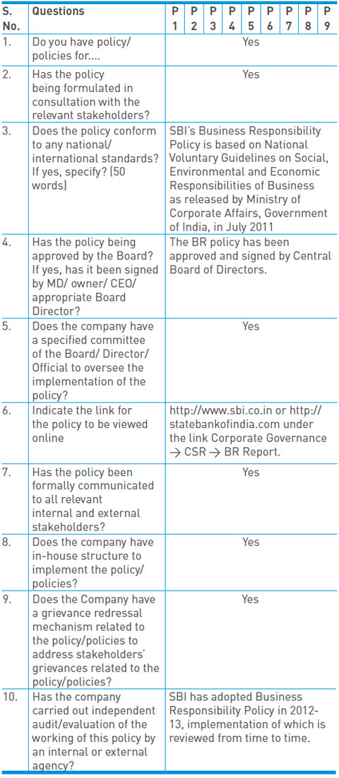 This is the second Business Responsibility report of the Bank and in accordance with SEBI requirements and published on an annual basis. The BR report for FY 2013-14 can be accessed at Bank's website http://www. sbi.co.in or http://statebankofindia.com under the link Corporate Governance →CSR→BR Report.