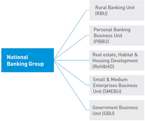The National Banking Group (NBG) is the largest business vertical of the Bank, anchoring 95.24% of total domestic deposits and 52.05% of total domestic advances, as on 31st March, 2014. It is also the largest business vertical in terms of branch network and human resources.