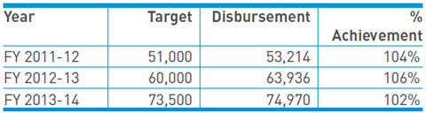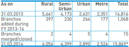 The Bank has achieved 100% coverage across 31,729 villages during FY 2013-14. The cumulative coverage totalled 52,260 villages.