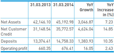 Notwithstanding challenges in growing top line and improving asset quality in the prevailing economic slowdown, registering an operating profit of `53 crores during FY 2013-14.