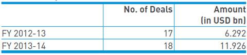 On the external front, improvement in the current account deficit (CAD) from 4.7% of GDP in FY 2012-13 to 1.7% for FY 2013-14 is good news. The narrowing of CAD followed a lower trade deficit due to higher exports as well as moderation in imports. With a gradual recovery in key partner economies, India's exports began to improve in July 2013; this was also helped by rupee depreciation. During FY 2013-14, exports grew by 3.98%, while imports contracted by 8.1%. It resulted in sharp contraction in trade deficit from USD 190.3 bn in March 2013 to USD 138.6 bn in March 2014, primarily due to a 40% decline in gold imports. Going forward, with a likely improvement in world GDP and global trade, export growth is likely to recover in 2014-15.