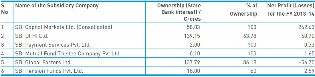 SVL is a wholly owned subsidiary of SBI Capital Markets Ltd. SVL has posted a loss of `0.35 crores in FY 2013-14 as against a net profit of `0.35 crores during FY 2012-13.