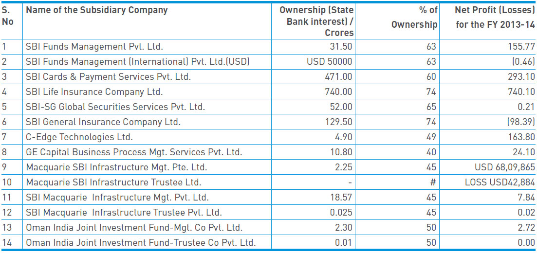SUL (wholly owned subsidiary of SBI Capital Markets Ltd.) has booked total revenue of `3.61 crores and a loss of `0.56 crores in FY2013-14 compared to `17.26 crores and net profit of `10.76 crores during FY2012-13, due to global recessionary scenario.