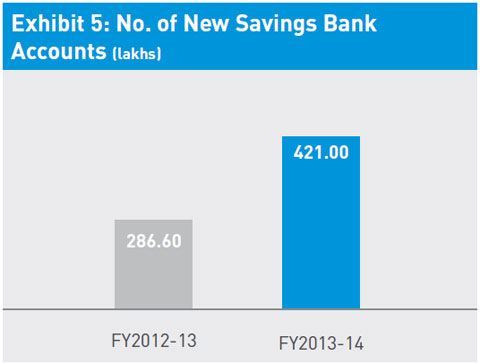 During FY 2013-14, the Bank has opened 1.50 crores small accounts with simplified KYC, taking the overall tally to 3.53 crores accounts.