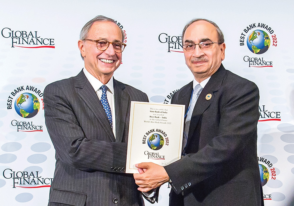 Shri Dinesh Khara, Chairman, SBI receiving “Best Bank Award 2022” from Global Finance New York.