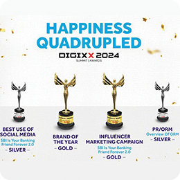 SBI won 4 awards at DIGIXX 2024 Summit & Awards for - Brand of the Year, Best Influencer marketing Campaign, Best use of Social Media & PR/Online Reputation Management on 22.03.2024, at New Delhi